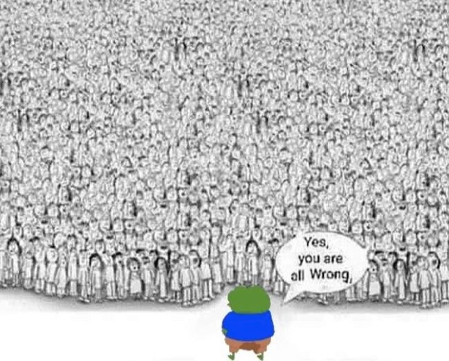 On the one hand, four years on, I clearly didn’t win that narrative battle, like at all, by any sane or quantifiable measure of “winning”. On the other hand, people don’t like losers, so I must continue to pretend that I’m winning and that the scales are falling from peoples’ eyes and that soon, very soon, people will start to check out of the controlled opposition Z-narrative en masse.